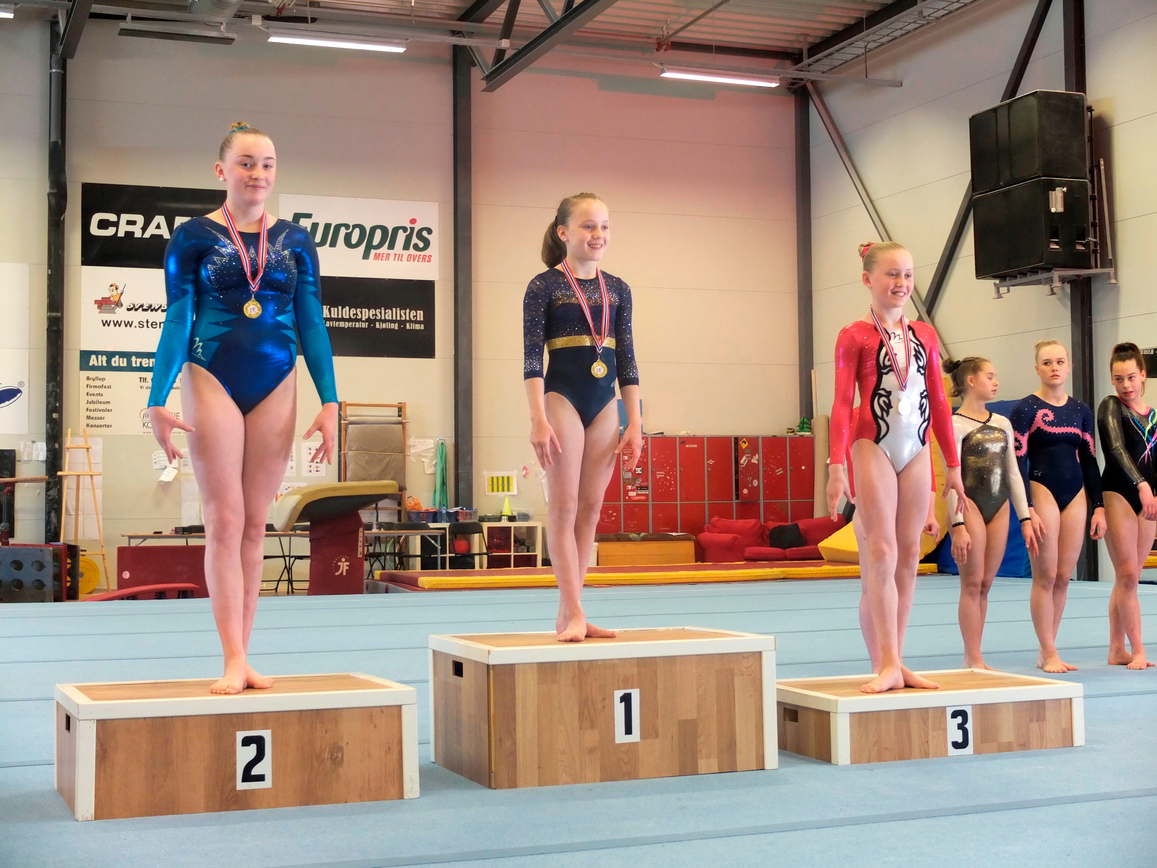 I FIG jr.klassen (internasjonalt reglement) turnet Benedicte Olsen, Annika Hegreberg, Oline M. Rolfsøn og Emma Hegreberg. Alle gjorde mange flotte øvelser, men best denne gang var Annika Hegreberg med en solid 5.plass sammenlagt. Storesøster Emma fulgte etter på 9.plass, Benedicte Olsen på 10., og Oline Rolfsøn på 12.plass. Hederlig innstats av alle jentene, men kun Annika og Emma kom videre til finaler på søndagen.